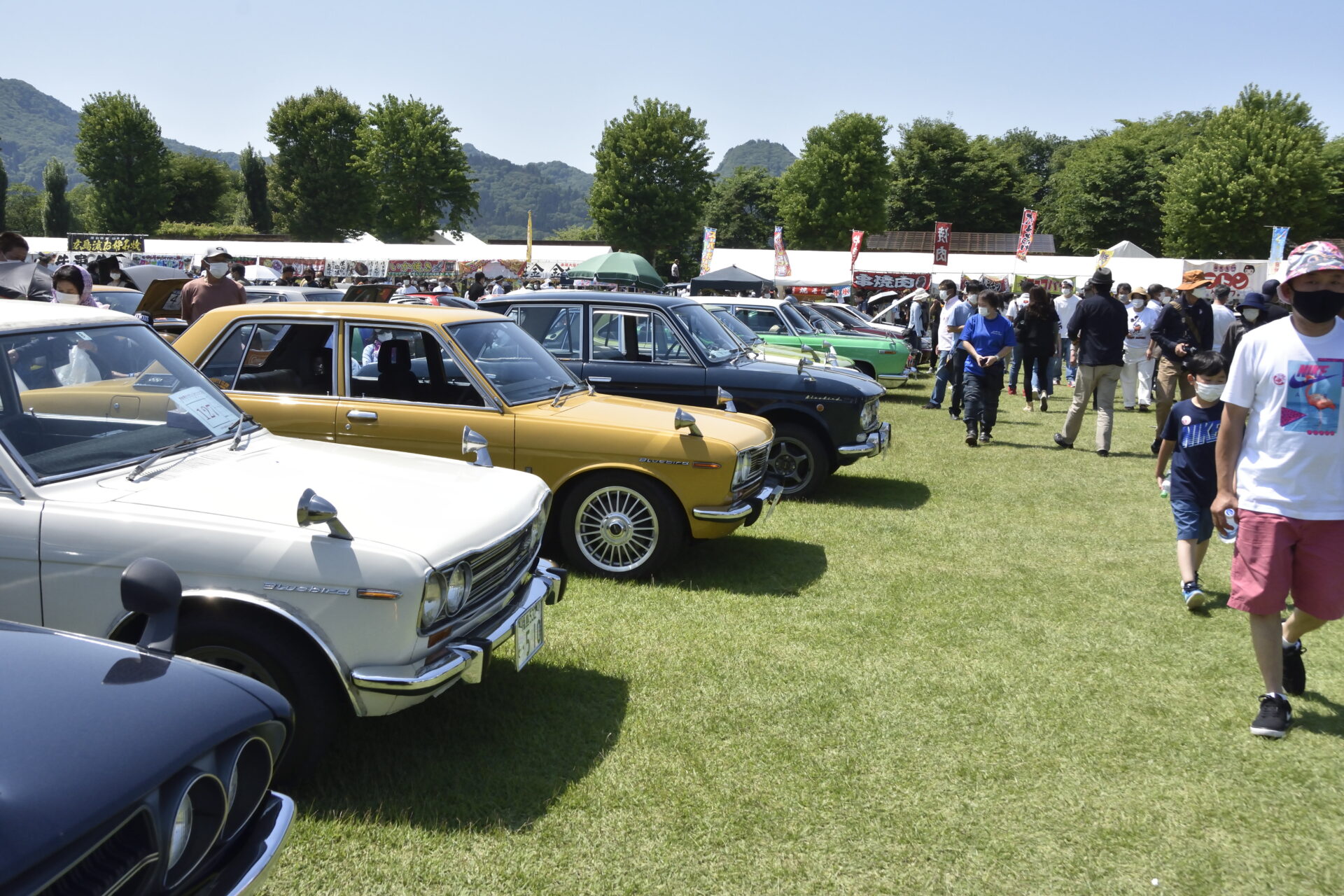 また、ご当地ヒーローショーや、自衛隊車両など働く車の展示、カーグッズなどが販売されるフリーマーケット、町内外のグルメが充実した出店コーナーなど、車好きはもちろん、大人から子どもまで楽しめるクラシックカーイベントです。