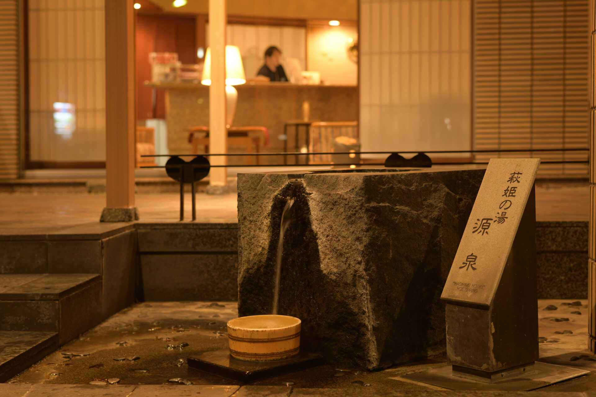 郡山市中田町で350年以上受け継がれる「海老根手漉き和紙」と、当館の源泉「栄楽泉」。