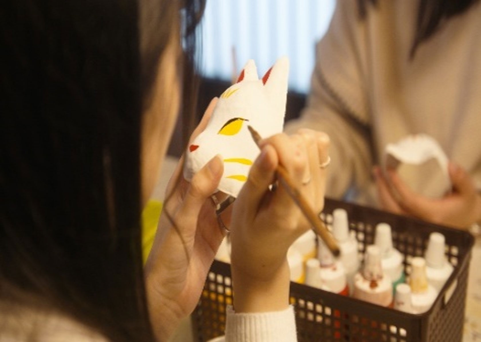・歴史と工房見学 ・工房で張子の意味や工程を知る ・狐面の絵付け体験