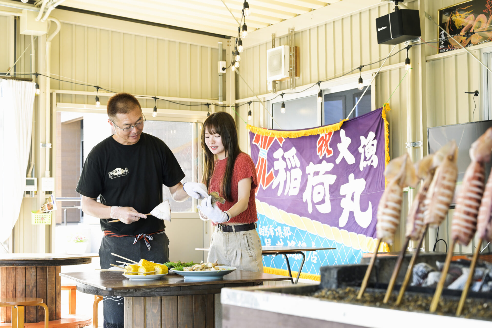 東日本大震災で途絶えてしまった『浜焼き』。食文化の復興に立ち向かう熱い思いを持つ、地元の若旦那との交流しながら、魚介類の串打ちや伝統の焼き方を体験できます。
