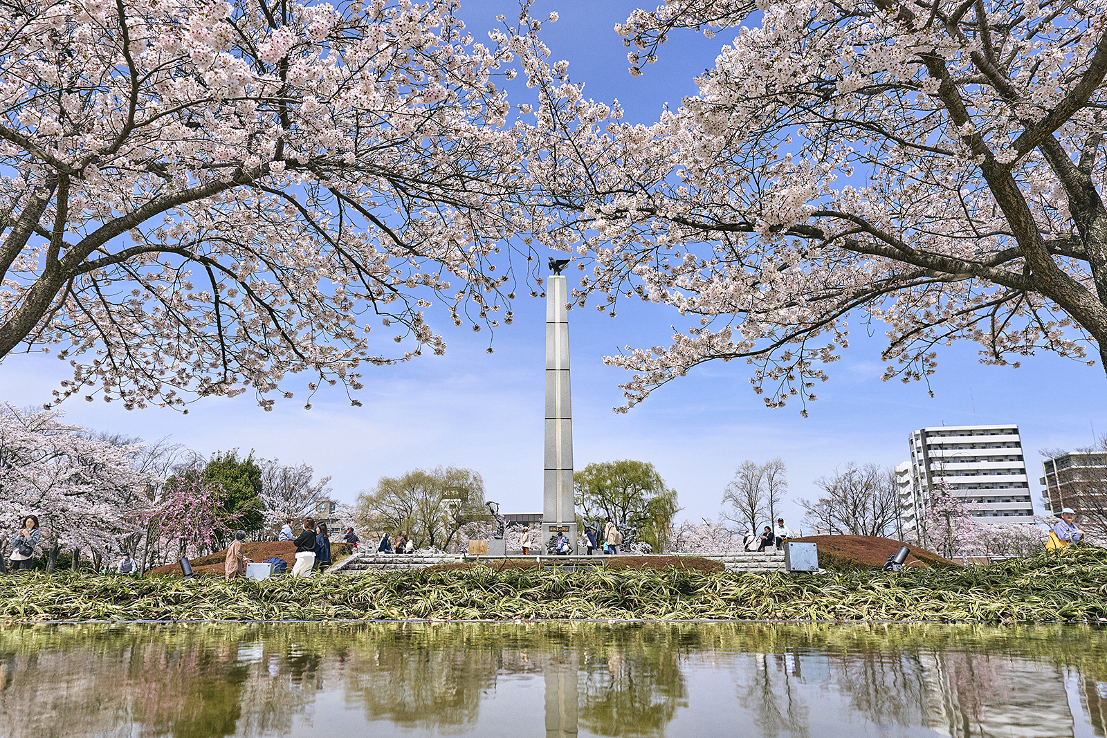郡山市発展の礎となった安積開拓のシンボルで、明治時代のはじめに灌漑用の池として造成された五十鈴湖を中心に、スタジアム、陸上競技場などが併設されている公園です。日本最古の染井吉野を含む約1300本の桜が…