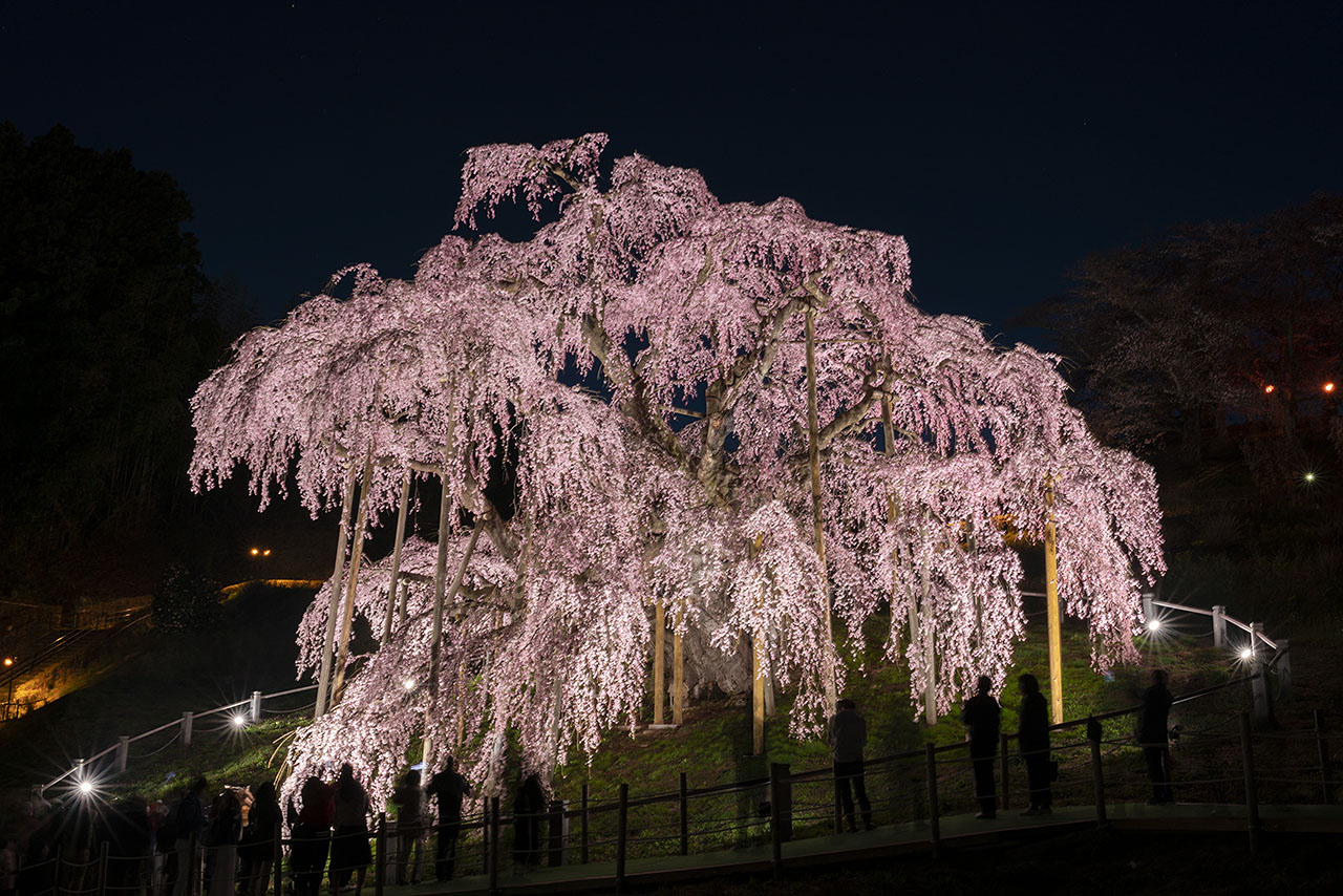 樹齢1000年以上と推定される国指定天然記念物のベニシダレザクラで、日本三大桜のひとつに数えられています。薄紅色の小さな花を枝いっぱいに咲かせ、その姿が滝のように見えることから名がついたとも言われてい…