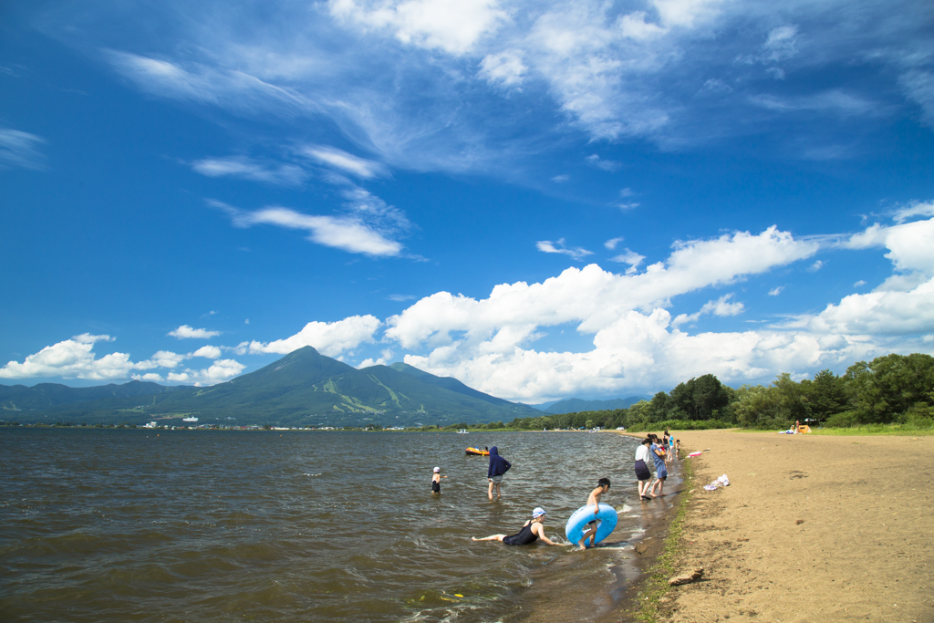 国道49号沿い、猪苗代湖の北岸に位置します。長瀬川の河口にできた砂州のため遠浅の砂浜が続き、湖水浴に適しています。付近にはキャンプ場もあり、猪苗代湖を前景に磐梯山を眺めるスポットとしてよく知られていま…