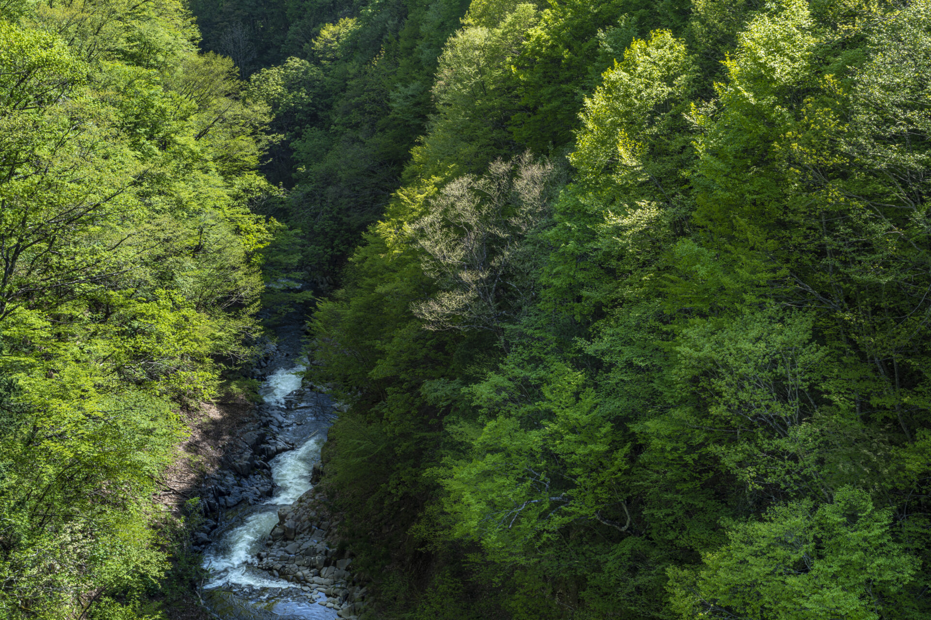 約10kmにわたり滝や急流、大絶壁、原生林などがある渓谷で、紅葉のシーズンには赤や黄、緑など多彩な色が楽しめる人気の紅葉スポットです。橋の上から渓谷を眺めると圧巻の景色が広がり、春の山桜、夏の新緑も絶…