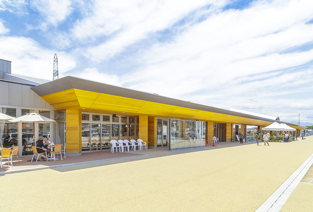 国見生まれのオリジナル商品・一般食材、新鮮地元産の野菜・くだもの、6次化商品が並ぶ直売所。福島県の名産・お土産品も取り揃えました。宿泊施設やドッグランもあります。