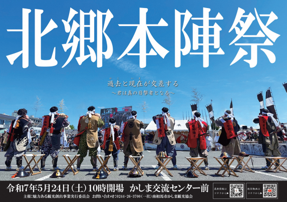 相馬野馬追北郷本陣祭は、騎馬武者による伝令口上、謁見の際の口上や作法など戦国時代を彷彿させる北郷(鹿島区)だけで催される行事です。北郷陣屋では、副大将を中心に、侍大将、副軍師がそろい、軍者をはじめとす…