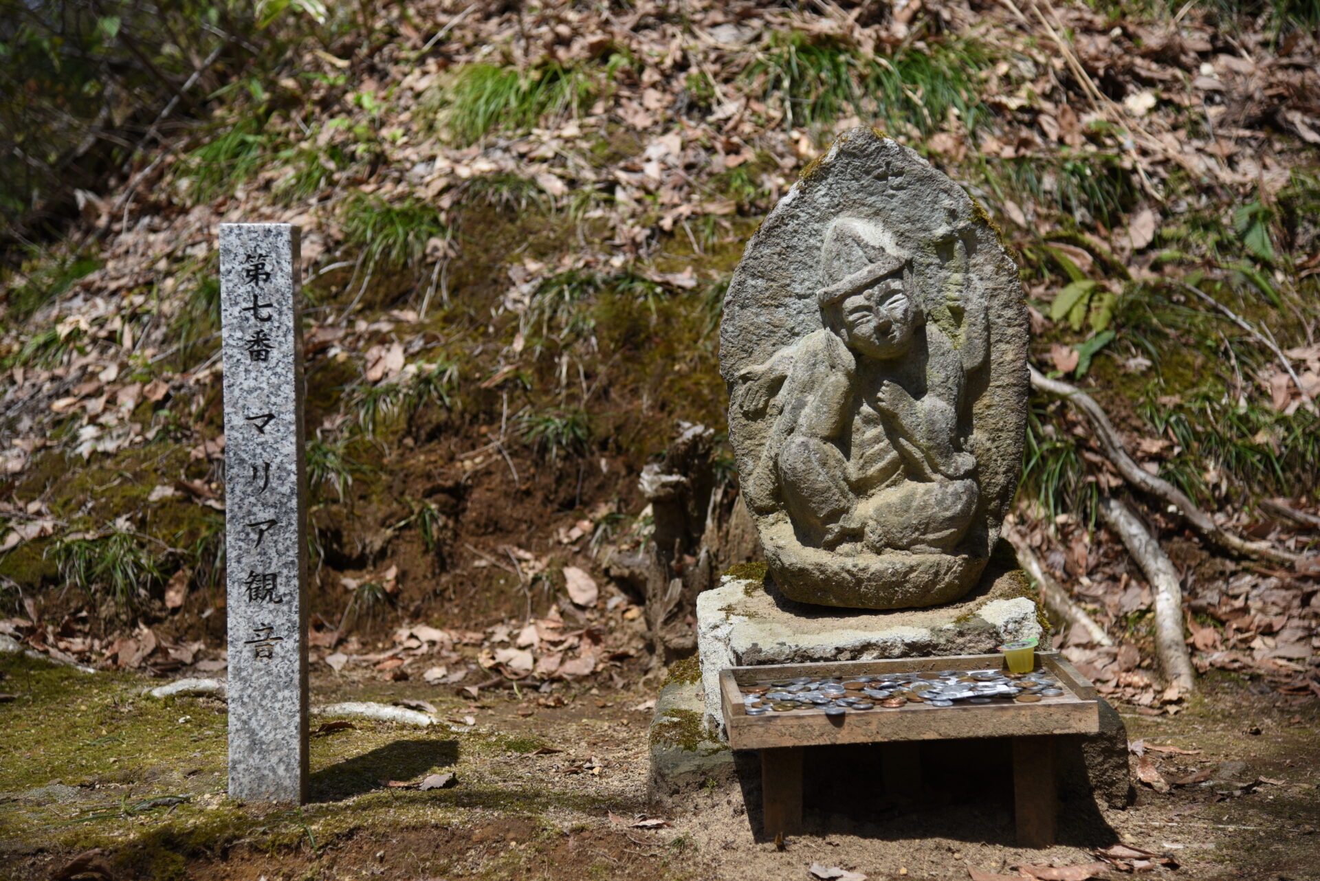 久保田地区の観音山は標高501m、1周300mほどの小高い丘陵に33体の石の観音菩薩が安置され、「まわり観音」として親しまれています。十字架を手にした「マリア観音」は、全国的にも珍しく、注目の観音像で…